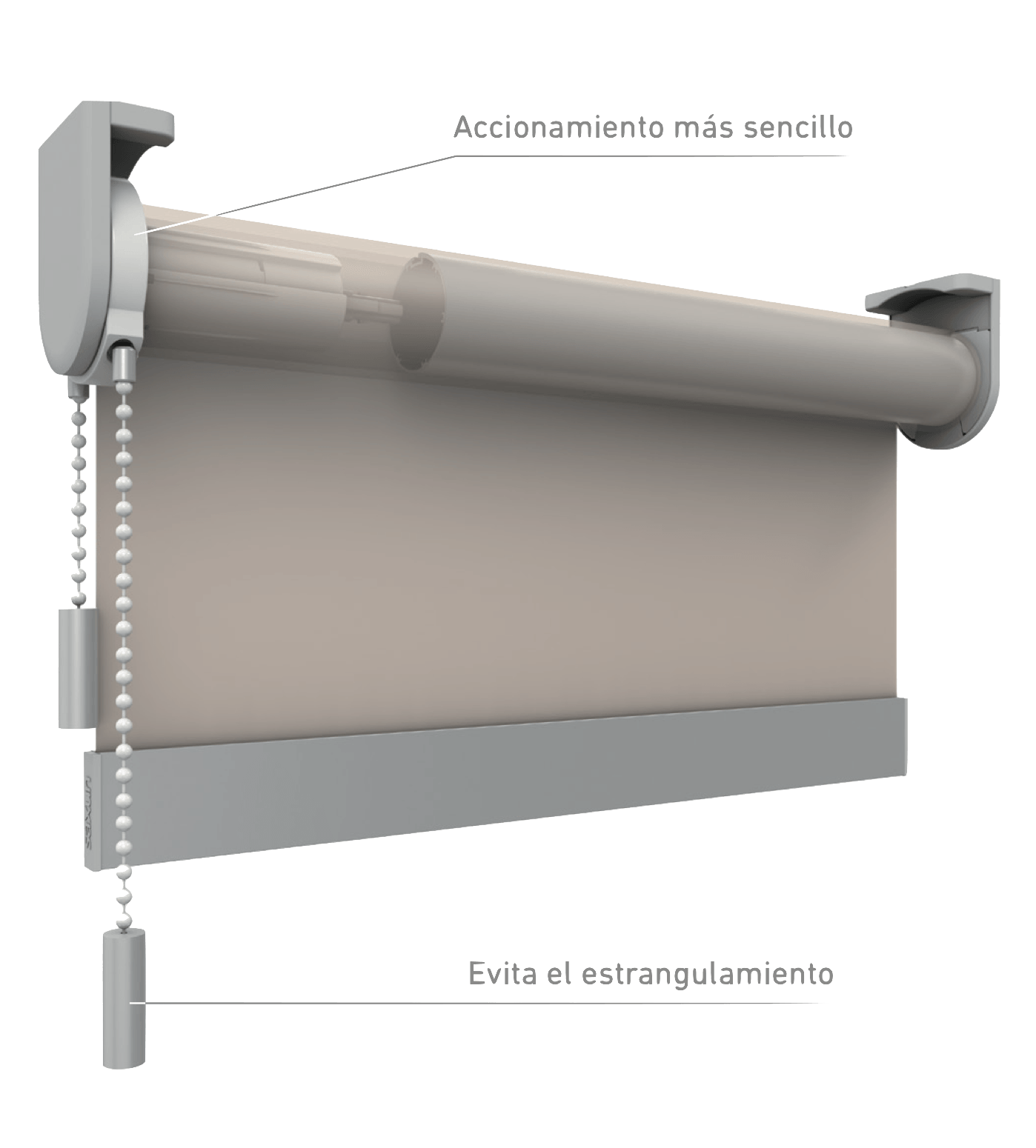 The new Velia system is a comfortable and simple solution to make Saxun Roller blinds the safest for children.